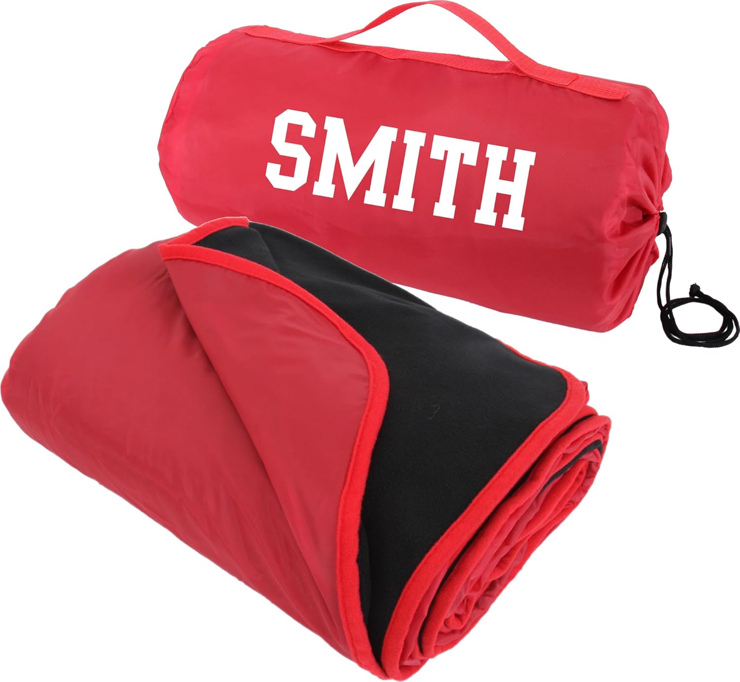 • ✅ Personalized with your name/text of choice. Personalization will be professionally pressed on the stuff sack as pictured. Super plush 260 gm fleece is extra thick and warm for cold days. Great for camping, hunting, and all sporting events. Easy carry portable roll up design with included carry bag with strap and drawstring closure.