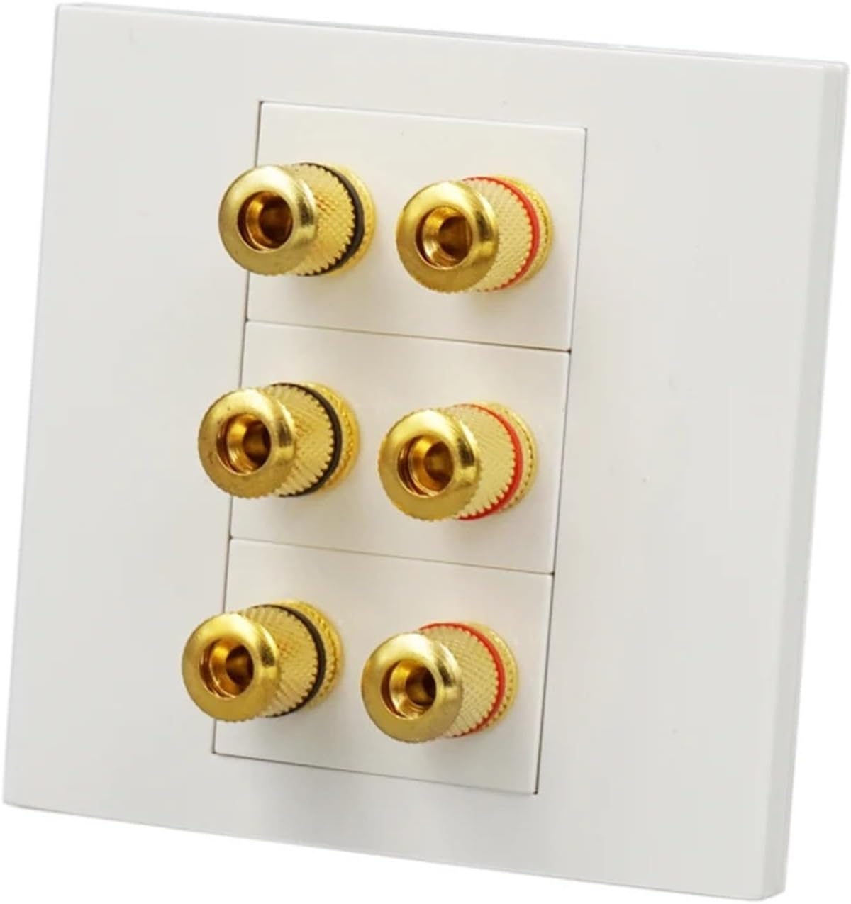 Wall Plates & ConnectorsColor: WhitePorts: Speaker x2 + Speaker x2 + Speaker x2Type: Banana Size: 86x86mm or 120x70mm, optionalPanel material: plasticEasy to install and connectScrew hole distance: 60mm or 82mm optionalInstallation method: wired connectionModel: 86-3SPSize: 86x86mmScrew hole distance: 60mm or 82mm optionalPanel material: smooth/resistive PCPort: Speaker banana color: