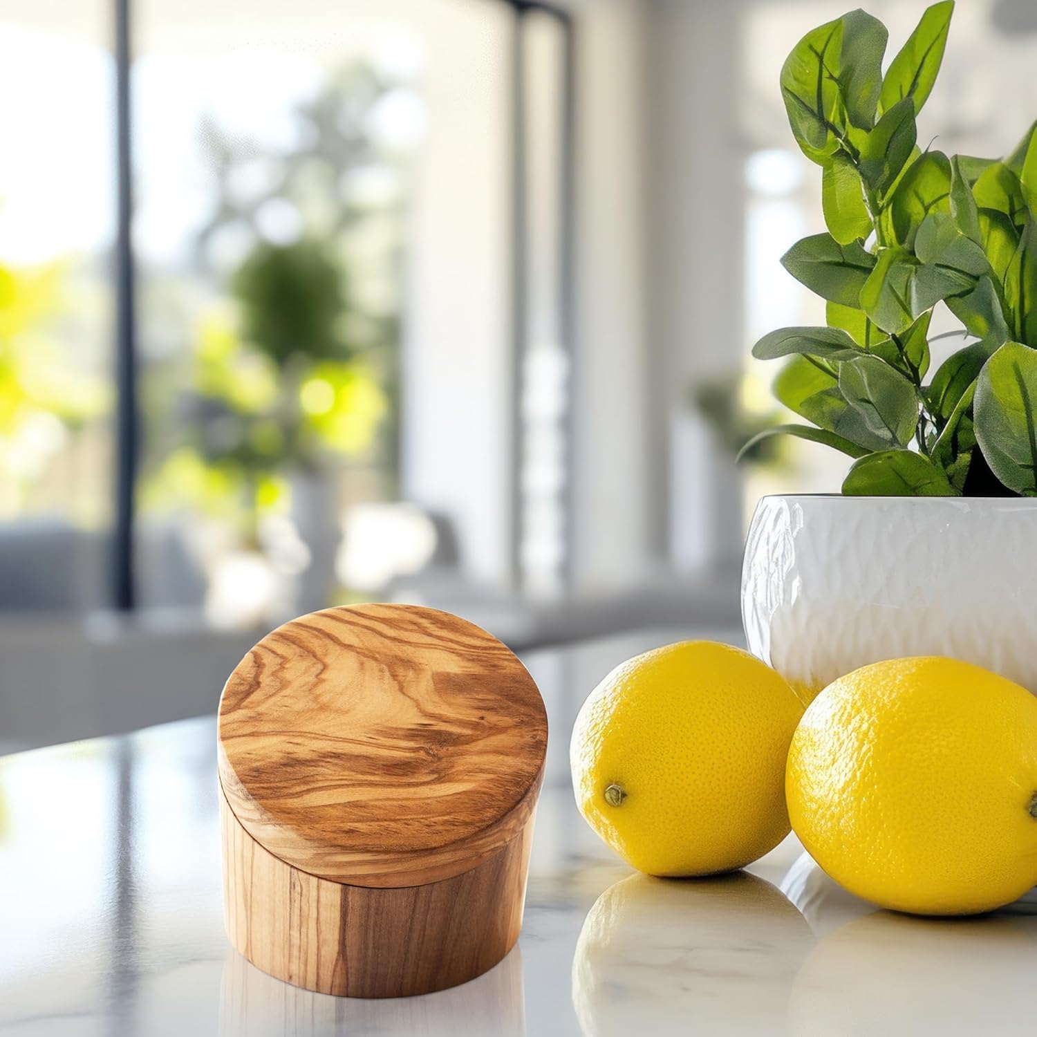 Flavorful cooking is at your fingertips with the Rock & Branch Olive Wood Angled Salt Cellar! This beautifully crafted olive wood salt pig is an ideal way to store up to 3.8 ounces of salt, herbs, spices or seasonings. Olive wood is known for its striking grain patterns and natural beauty, bringing timeless elegance to any kitchen or dining table. Each salt bowl is uniquely yours due to the distinct wavy pattern natural to olive wood. The ingenious magnetic lock and swiveling lid design makes it easy for busy cooks to grab a pinch of seasoning with just one hand. The clever angled design makes it even easier for harried home cooks to quickly add just the right amount of flavor while cooking. This gorgeous salt jar is great outside of the kitchen too. Use it to store jewelry, office supplies, knickknacks and more!