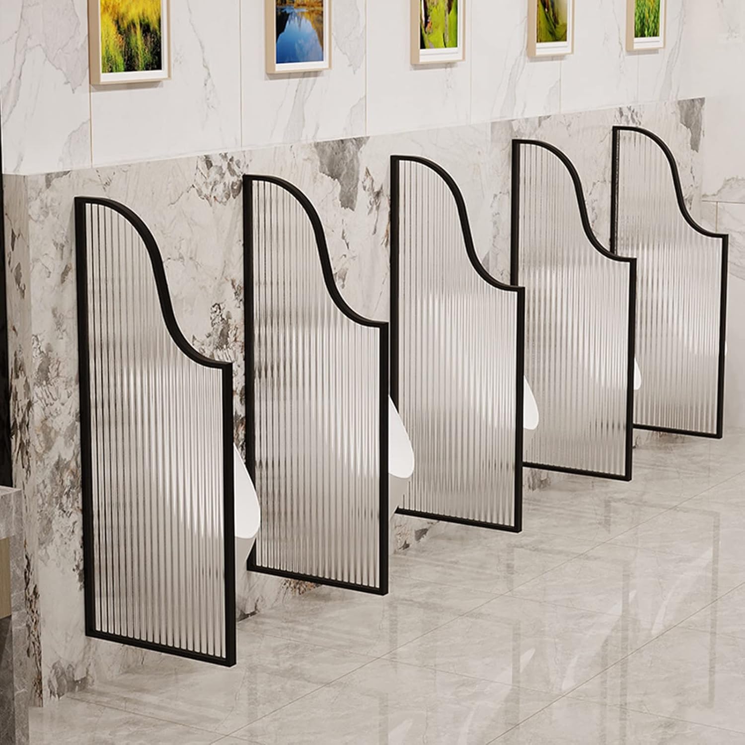 Urinal Privacy Screen Translucent Tempered Glass Divider Partition, Hotel School Office Public Restroom Toilet Partition Board Creative wall-mounted urinal privacy screen, providing excellent privacy, easy to clean, and adding modern charm to your home and commercial space. SPECIFICATION: Product name: urinal partition Material: stainless steel frame, tempered glass Size: height 120cm, width 40cm Project: Urinal partition Type: urinal screen Installation type: wall Including: urinal partition panel×1; installation hardware FEATURES: · The translucent screen protects privacy while allowing natural sunlight to pass through; its clear and stylish design will add a modern style to any space. · Stainless steel frame + durable tempered glass material, impact-resistant and wear-resistant, durable, and still bright as new after long-term use; · Including installation materials, this urinal partition can be easily connected to the wall.