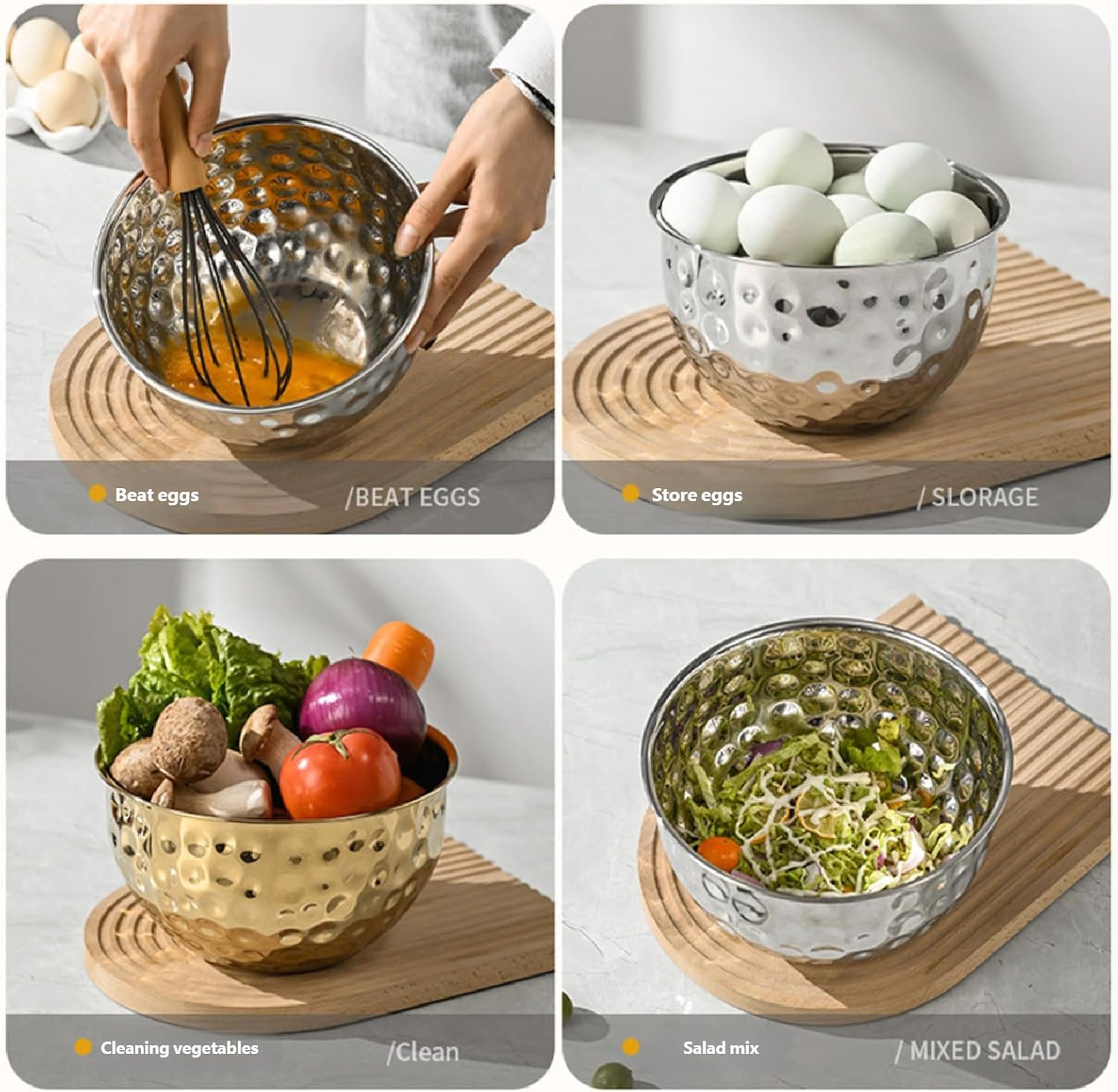 Versatile 280mm Diameter Nonrust Steel Hammered Serving Bowl Excellent Salad Tray For Kitchen And Dining Needs Features: Crafted from premium 304 stainless steel for excellent rust and resistance, ensuring long lasting in homes kitchens or commercial settings Features a stylish hammered texture that enhances visual appeal while providing nonslip functionality for safe handling during food preparation With 280mm diameter and 100mm height, this spacious bowl perfectly accommodates salads, fruits, or cold dishes for family meals, picnics, and buffet setups Smooth interior surfaces allows quick washing with regular dish soap, saving time on maintenance while maintaining excellent hygiene standards Made from 304 stainless steel that contains without harmful chemicals, offering a option for sustainable households Specifications: Materials: 304 Stainless Steel Color: Silver / Gold Diameter: Approx.14cm / 5.51inches + 16cm / 6.30inches + 18cm / 7.08inches + 20cm / 7.87inches + 22cm / 8.66inches Package Includes: 1Set Elegant Stainless Steel Hammered Salad Bowl Note: 1.Please allow 0-2cm errors due to manual measurement, make sure that you do not mind before you order 2.Due to the difference between different monitors, the picture may not reflect the actual color of the item