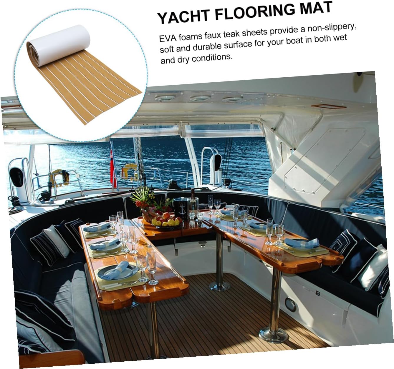 Package List 1 Roll x Floor Carpet Features - Color: As Shown boat adhesive floor mats. - Size: 240.00X45.00X0.60 cm/ 94.32X17.68X0.24 inch boat deck flooring. - Material: EVA boat flooring mat. - Self-adhesive decking pad with strong glue at the back can be easily cut to fit nearly any surface on a boat boat floor mats. - decking sheet can easily be cut down to fit nearly any surface on a boat where non-skid, or protection for the boat's surface is required boat floor mat. - EVA foams faux sheets provide a non-slippery, and durable surface for your boat in both conditions non skid boat flooring. - Have the look of without the difficult installation, costs and maintenance required for real wood boat floor pad. - EVA environmental , , non-skid, shocks absorption, heat resistant, salt water proof boat flooring decking.Goods Informationboat floor mats This is for decorating the yacht speedboat pool.boat deck flooring EVA faux sheet also is a new, easy DIY flooring for Speedboat, surfboard the yacht deck, even swimming pool or garden or vehicle Non-slip mat