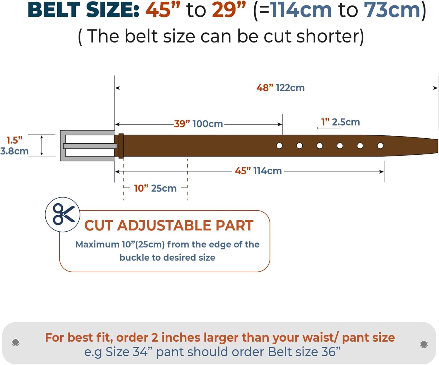 Be an exception in the style department by wearing this golf dress belt presented to you by VINACREATIONS. High-Quality: Our Navy Blue aIIigator belt is unique because it is made from the croc, not from the embossing pattern cow leather, thus lending it a polished look along with a natural sheen. Besides, it comes with a automatic buckle closure so that it is convenient to wear giving a Luxury, Soft texture, Comfortable, Shiny, Durable and Elegant look. Belt Size: Full Length: 48'' ; Belt size ( 45" - 29" ) ; Width : 1.5" . Five holes along the leather belt allow adjustability and flexibility to obtain your perfect fit complemented with a removable buckle that enables you to trim your croc belt to your ideal size. Please measure carefully your waist as the size chart in the detail page or your current belt size to fit perfectly. Best Gift: These AIIigator belts automatic buckle are high quality, soft material & beautiful design by Vietnamese craftsmanship. Our fashion leather belt is the nice gift for daddy, boss, colleague, grandfather, boyfriends, husband,… on Birthday, Christmas, Anniversary. Note: Since these are made from leather so there may leather be some differences in the grain and pattern but generally, they are similar. Color: the colour may slightly vary due to photographic lighting sources or your monitor settings Custom: We are a seller as well as a maker so if you want to have customized other sizes, please let me know. I will make it as your request. If you have any problem, please feel free to contact us. We always here to support you.