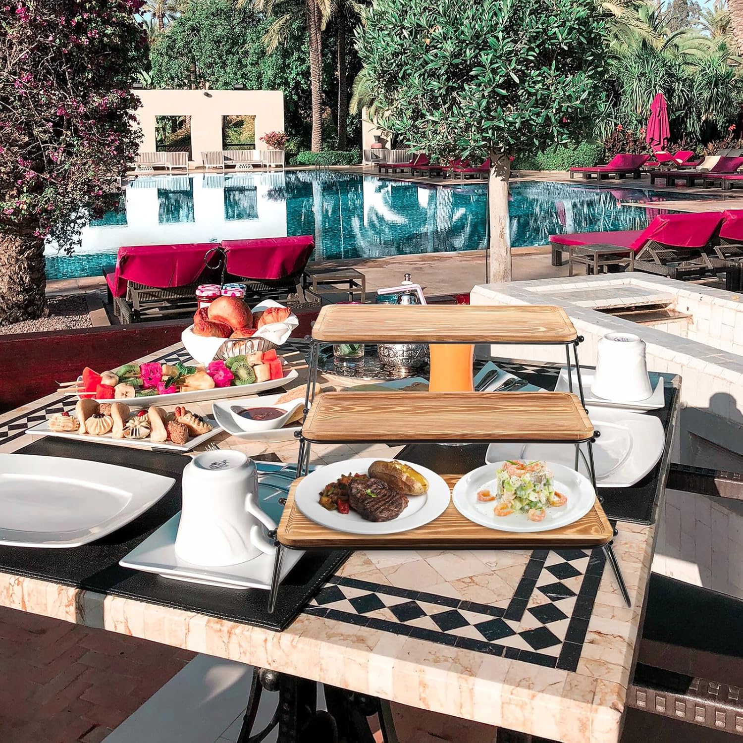Package Include 3 x wooden storage trays 3 ( ) Features -Color:Coffee -Material:Wood, iron -Product Info:Wooden storage rack -Size:61.00X43.20X22.30cm/23.97X16.98X8.76in -The raised edges of each tray are thoughtfully designed to prevent items from slipping off, ensuring your belongings stay securely in place rectangle plate wood. -This wooden storage rack tray is designed for effortless disassembly, making it incredibly convenient for those who frequently move or need to store it away when not in use wooden tray. -Versatile in its application, this wooden rack is ideal for a variety of uses, from enhancing home decor to organizing office supplies drink tray. -Featuring a multitiered structure, this rack maximizes your display area while efficiently saving space, making it great for both small and large rooms tray tables. -Crafted from wood, iron, this storage solution not only promises durability but also adds a touch of elegance to any setting rectangular wooden plates.Goods Informationwood tray Our coffee condiment service tray is a must-have for any coffee lover.room accessories Made from wood, iron, this tray features a tiered design that provides ample space for all your coffee essentials.wooden tray for kitchen counter The detachable structure makes it easy to clean and store, ensuring your coffee station remains organized